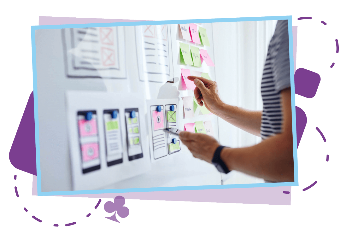 בתהליך העיצוב התחלנו מגיבוש שפה עיצובית. קיבצנו אלמנטים וסגנונות המתאימים למוצר לכדי מוד בורד אחד גדול.